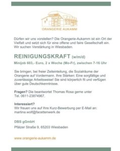 Für die Orangerie Aukamm sucht die DBS gGmbH Unterstützung!